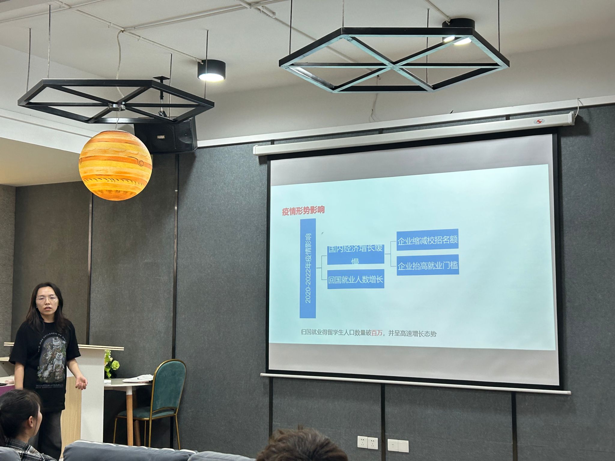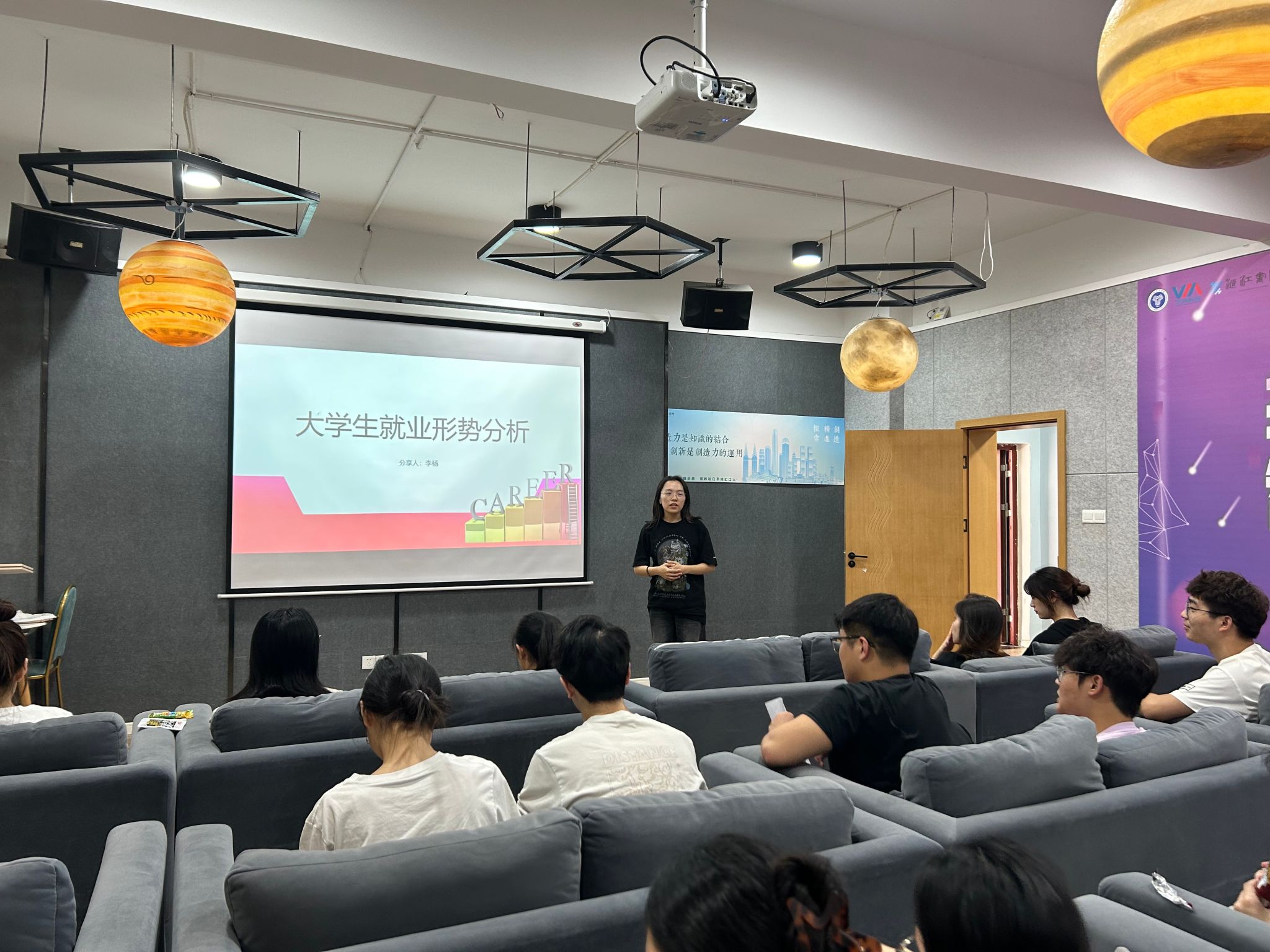 为了积极响应学校关于促进学生就业创业的号召,增强同学们的就业意识,明确就业方向,李杨老师于11月1日下午3点在汇江书院影音活动室成功举办了一场别开生面的就业形式分析会。此次活动不仅为班级内部搭建了一个交流分享的平台,更让同学们对未来职业生涯有了更加清晰的认识和规划。
