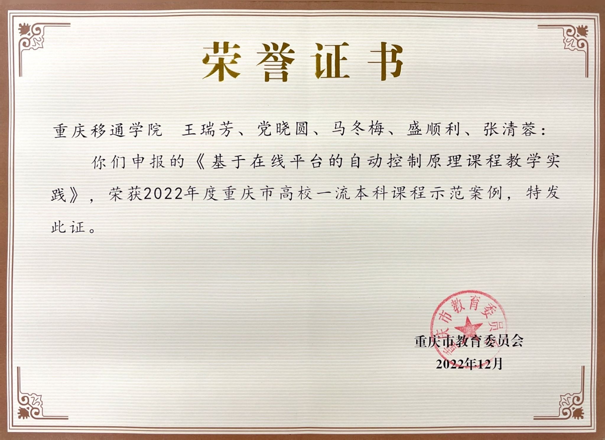 《基于在线平台的自动控制原理课程教学实践》——重庆市一流本科课程示范案例