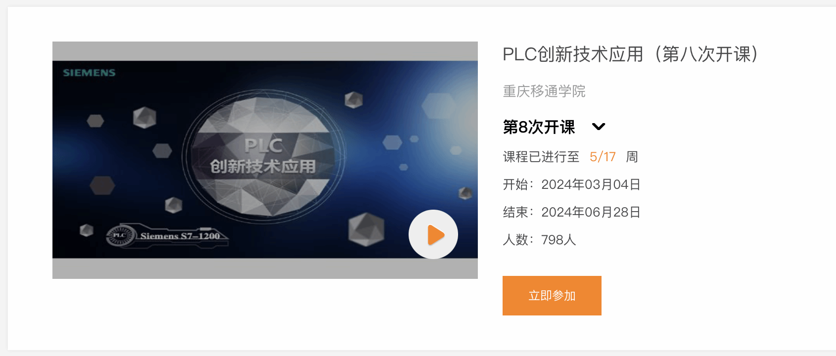 《PLC创新技术应用》https://www.cqooc.com/course/online/detail?id=334571573