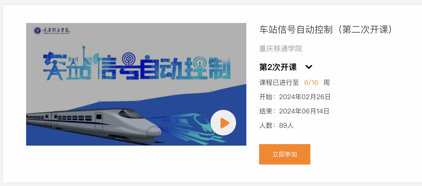《车站信号自动控制》https://www.cqooc.com/course/online/detail?id=334572623