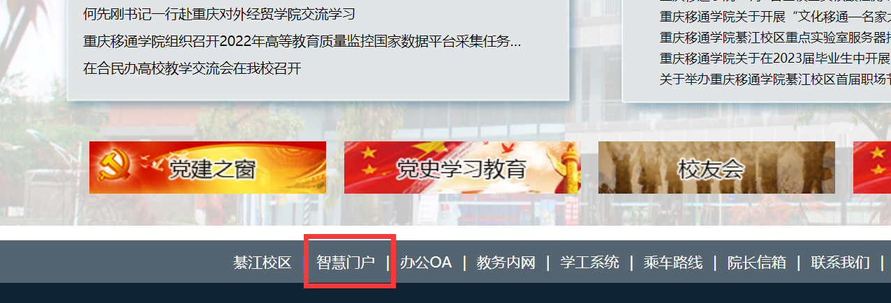 第一步:登陆学校官网底部的【智慧门户】 重庆移通学院 (cqyti.com)