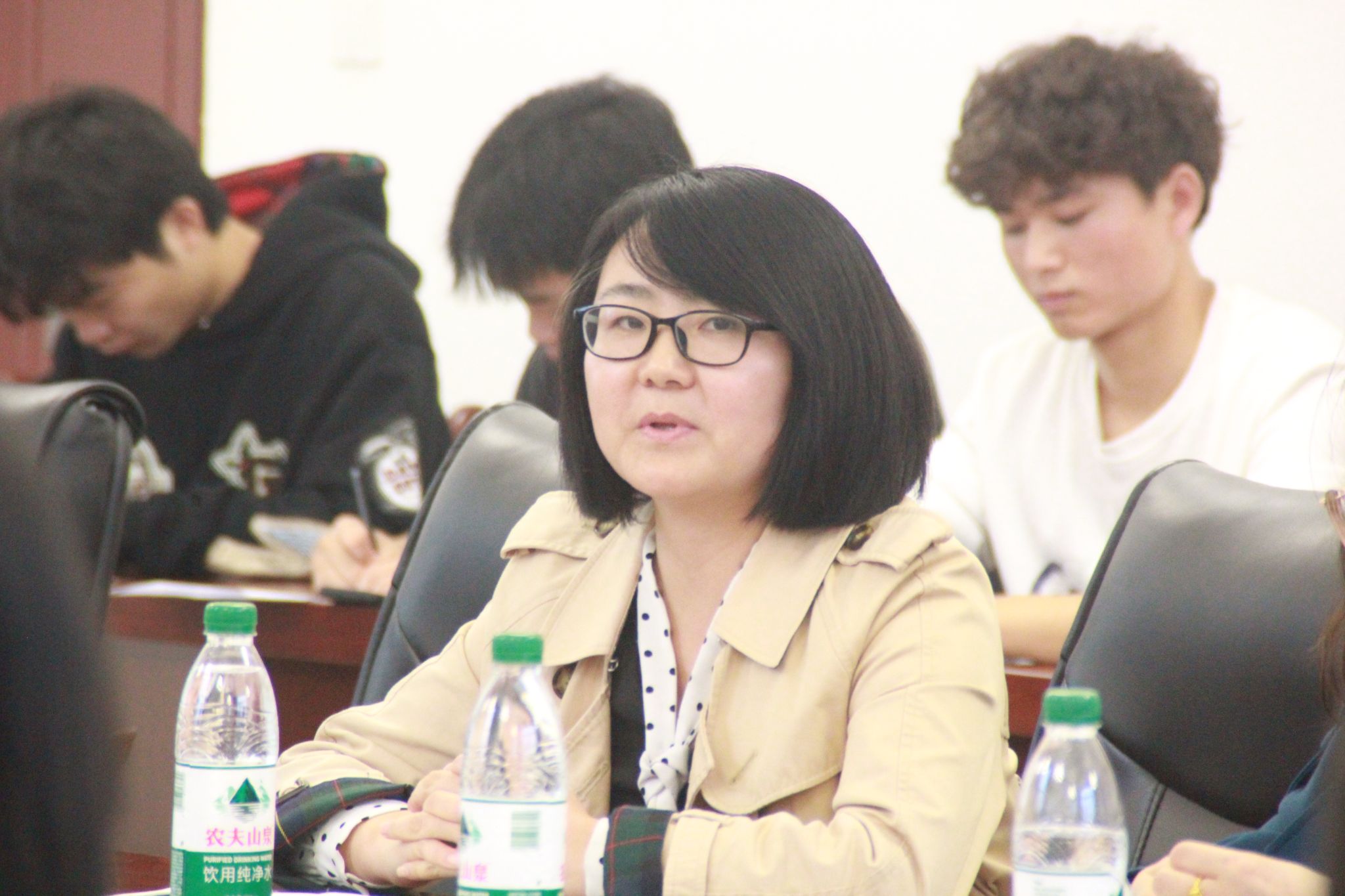 党晓圆院长及祝玮副院长与教师代表们认真记录同学们的每一个问题和建议。党晓圆院长期望,同学们应养成自主学习、终身学习的习惯,学习过程中要学会融汇贯通,要学好专业技能提升自身硬实力,认真学好通识课程,提升语言表达和写作能力,提升自身软实力。学工办主任刘桃针对同学们提出与生活相关的问题进行总体解答,并要求同学们加强对自身学业的重视。