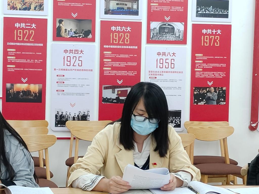 党晓圆书记领学“实施科教兴国战略,强化现代化建设人才支撑”篇章,党的二十大报告对教育科技人才单独成章部署,为高校在新征程上提出了更高要求。教育、科技、人才是全面建设社会主义现代化国家的基础性、战略性支撑,作为教育战线的党员,应全面贯彻党的教育方针,落实立德树人的根本任务。她表示作为基层教育战线的党组织,坚决响应党中央的号召,不断坚定信念,致力于办好人民满意的教育;以坚定的信念和高效的执行力向党的二十大胜利召开献礼,争做“四有”好老师,努力用敬业、精业的专业素养教书育人。