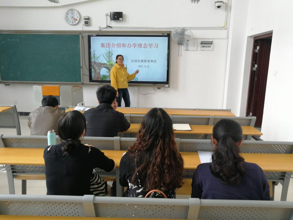 电气工程教研室以讨论的方式深入学习集团介绍和办学理念,其中杨佳义老师讲道:“应努力培养学生的专业自信心、学校自信心,要让学生知道我们是信息产业的人才培养的摇篮。”陈龙灿老师在交流中谈道,我们要鼓励学生参加课程设计、学科竞赛,引导学生探寻兴趣区域,区别其他重理论的大学。