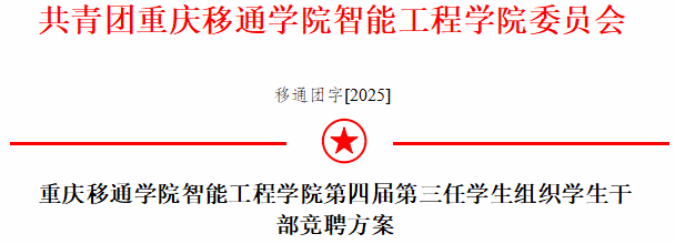2.竞聘人员根据招聘方案(详见附件1)填写《智能工程学院第四届第三任学生组织学生干部职位申请表》(附件2),并撰写竞聘工作报告(主要内容是对竞聘工作岗位的理解及工作思路等,字数不限,与职位申请表一同发至指定邮箱)。