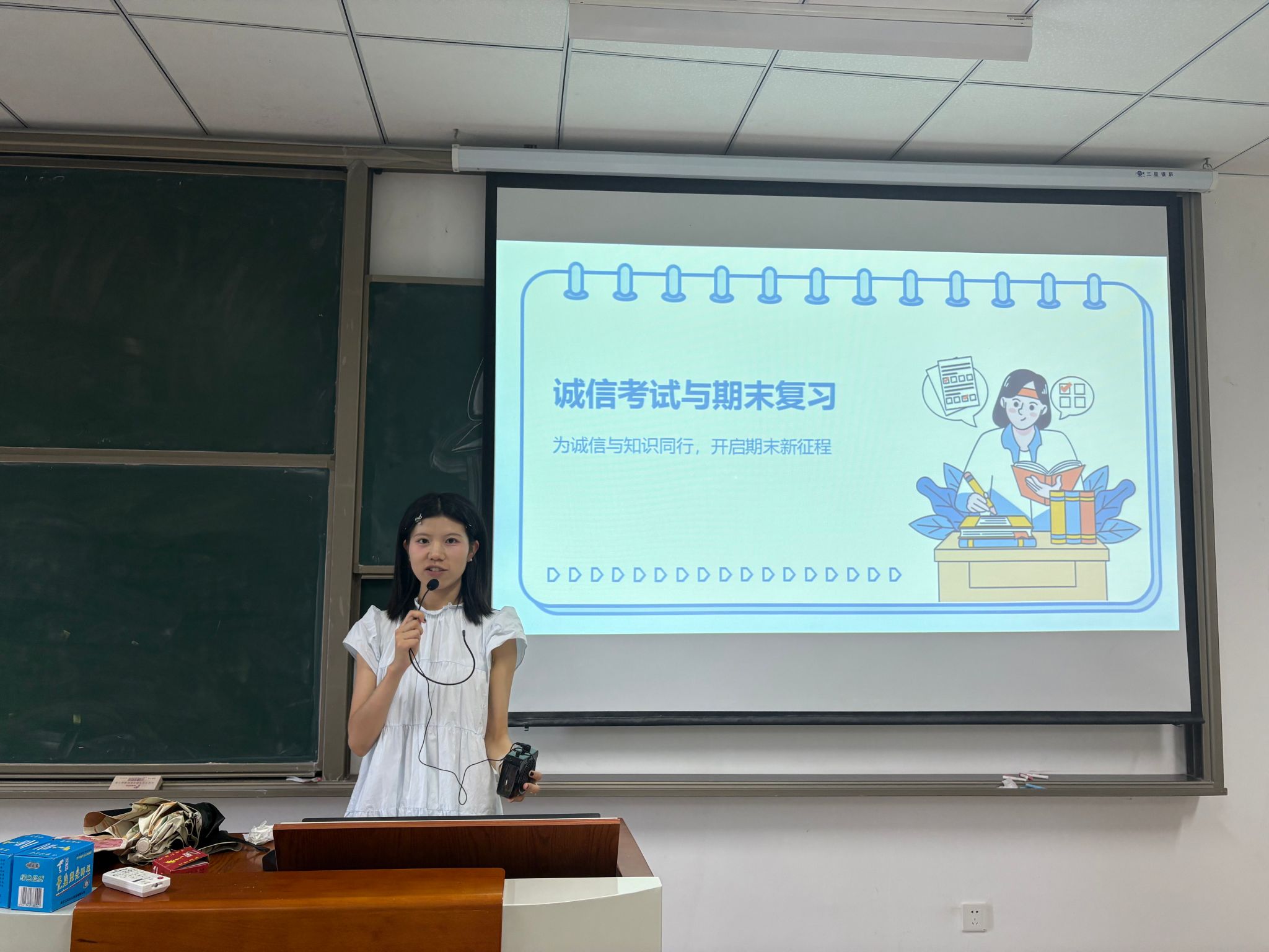年级宣传,共筑学风公约。6月,辅导员以年级、班级为单位开展了诚信教育主题年级会。在年级会上,同学们围绕学术道德和诚信问题展开了热烈讨论,分享了自己对学术诚信的理解和感悟。通过讨论,大家达成了共识,形成了班级学风公约。公约内容包括遵守学术规范、诚实守信完成作业和考试、积极参与学术活动等方面,为班级营造了良好的学习风气。
