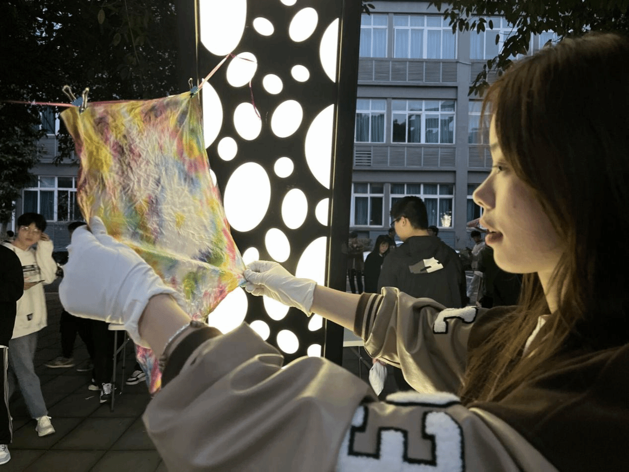 最后,此次扎染活动的顺利开展在培养同学们的兴趣爱好的同时,也让扎染走进了学校。全校女生通过此次的扎染活动中尽情地展现自我,增强自身的自信,在活动过程中收获惊喜与美好,从而也营造出行者公园书院群的良好氛围,在书院的育人愿景下,不断为学生们提供丰富的校园生活,动手实践机会,更促进书院文化不断地向前发展,增强书院家文化氛围。