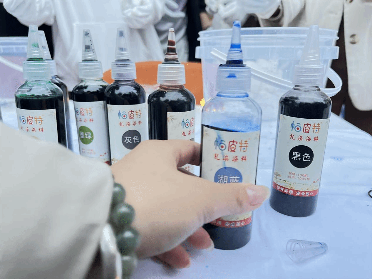 此次活动以摊位的形式进行开展。活动前期,学校就本次女生节的“仙女集市”面向各大书院以及学生组织征集“摊主”,行者书院公园群从而成功获取到了其中一个摊位。本次女生节“仙女集市”涵盖潮品、文创、民俗、美妆等多个方面,而行者公园书院群此次的活动主题则是民俗,通过本次扎染活动,不仅可以丰富和活跃同学们的校园文化生活,还能在一定程度上激发女大学生的青春活力,从而充分地展现女大学生的心灵手巧。