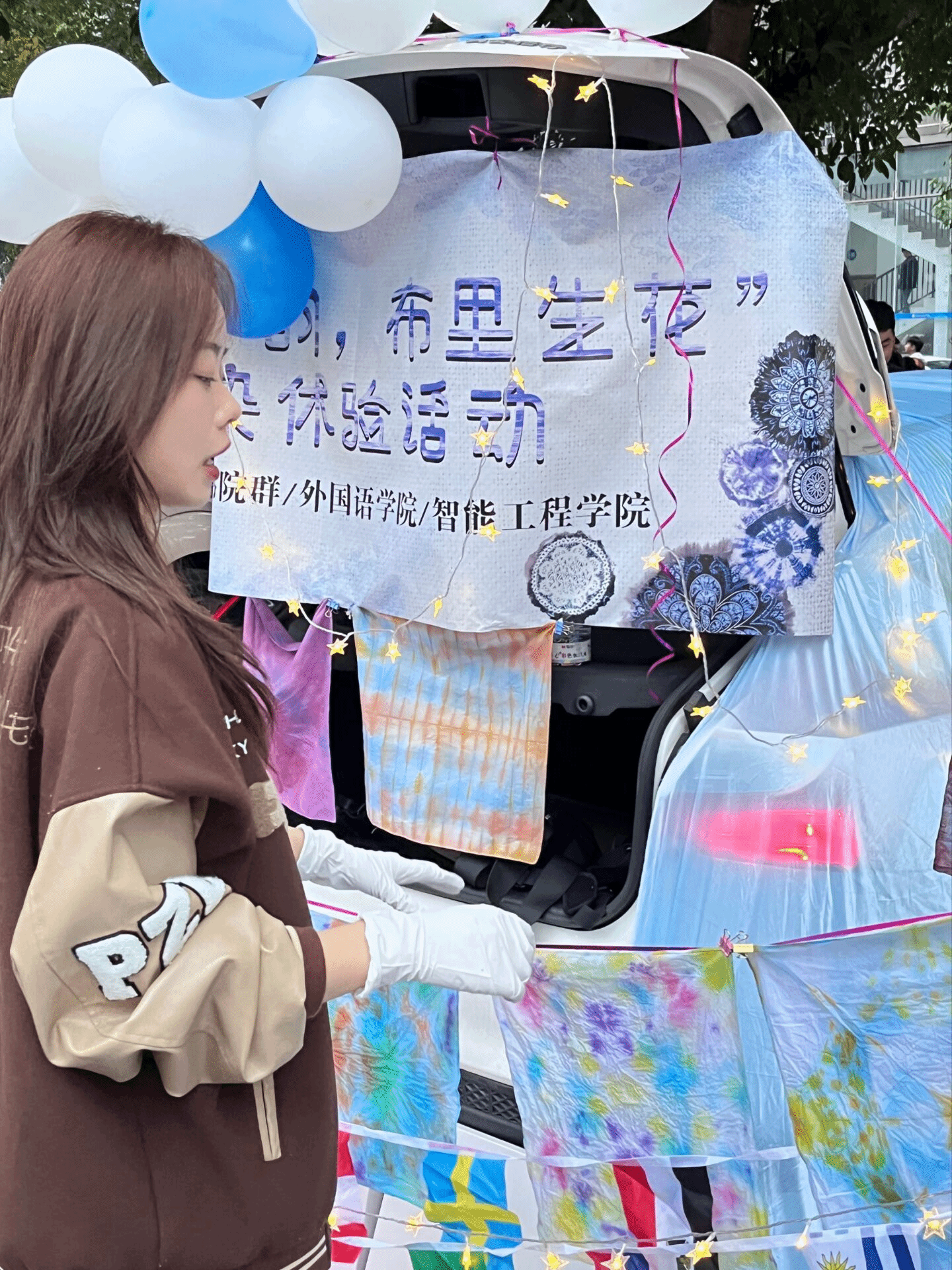 扎染是一项历史悠久的纺织品染色技艺,在古代,染色技术覆盖了人们生活的方方面面。而扎染的不断演变则源自于古代女性关于美和自然的思考。为了引导广大女生聚焦关注自身道德修养、文化内涵、自信自立等综合素质的提升,同时也为了迎接女生节的到来,2023年3月7日,行者公园书院群联合外国语学院与智能工程学院在黄桷树广场特此举办第三届行者公园女生节“一绢一韵,布里生花”扎染体验活动。