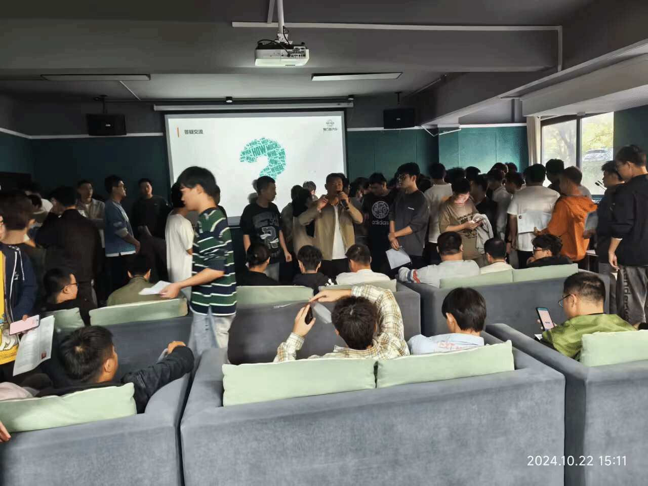 随后,宣讲会进入了高潮部分。李老师详细介绍了本次校园招聘的岗位需求,包括软件开发工程师、硬件研发工程师、自动驾驶算法工程师、市场营销专员等多个职位。不仅强调了这些岗位的重要性和发展前景,还分享了公司员工的成长案例,以及为员工提供的丰富培训资源、完善的晋升机制和优越的福利待遇。在宣讲会的问答环节,同学们积极提问,就公司文化、岗位要求、职业发展等方面的问题与小康动力有限公司的李老师进行了深入的交流。李老师耐心解答,不仅消除了学生的疑虑,还进一步增强了他们对新能源汽车行业的认识和兴趣。