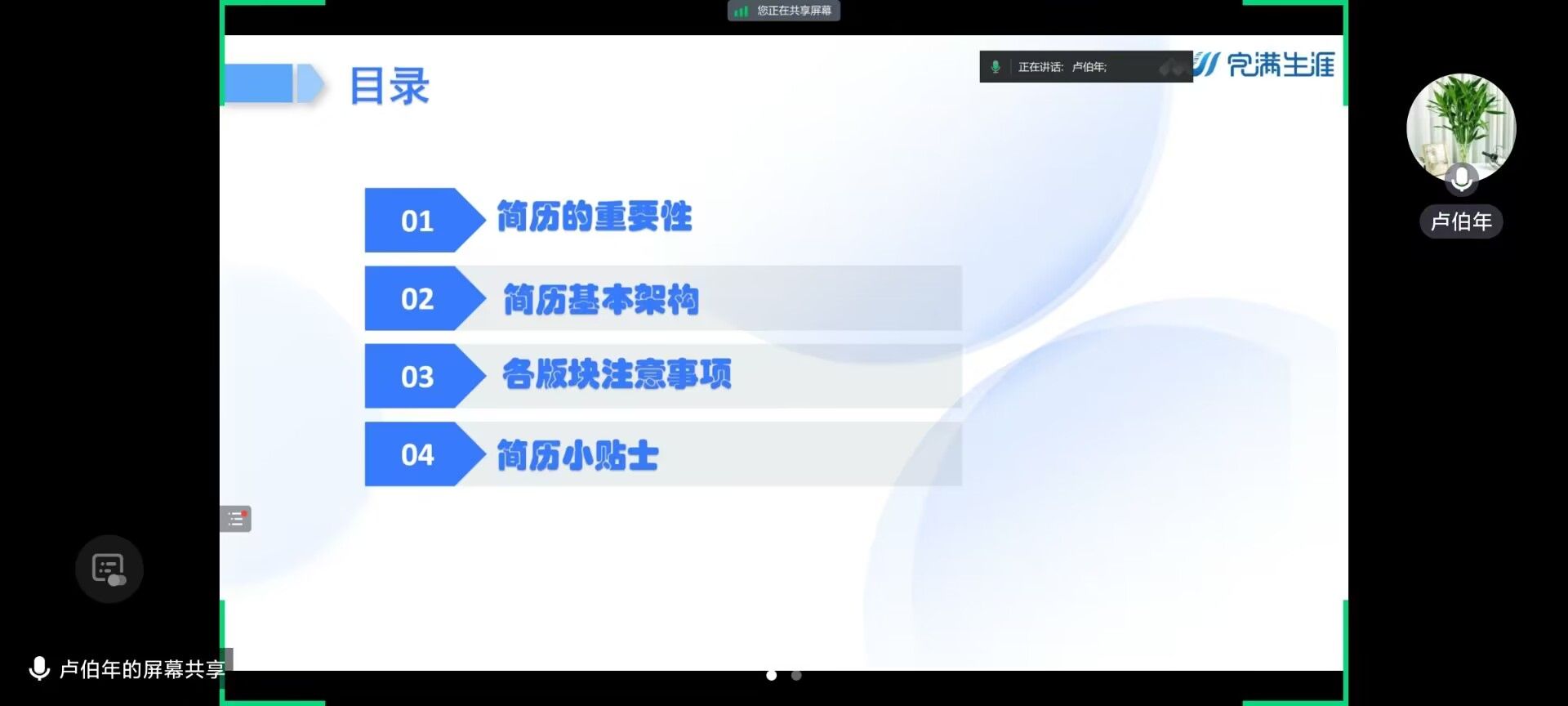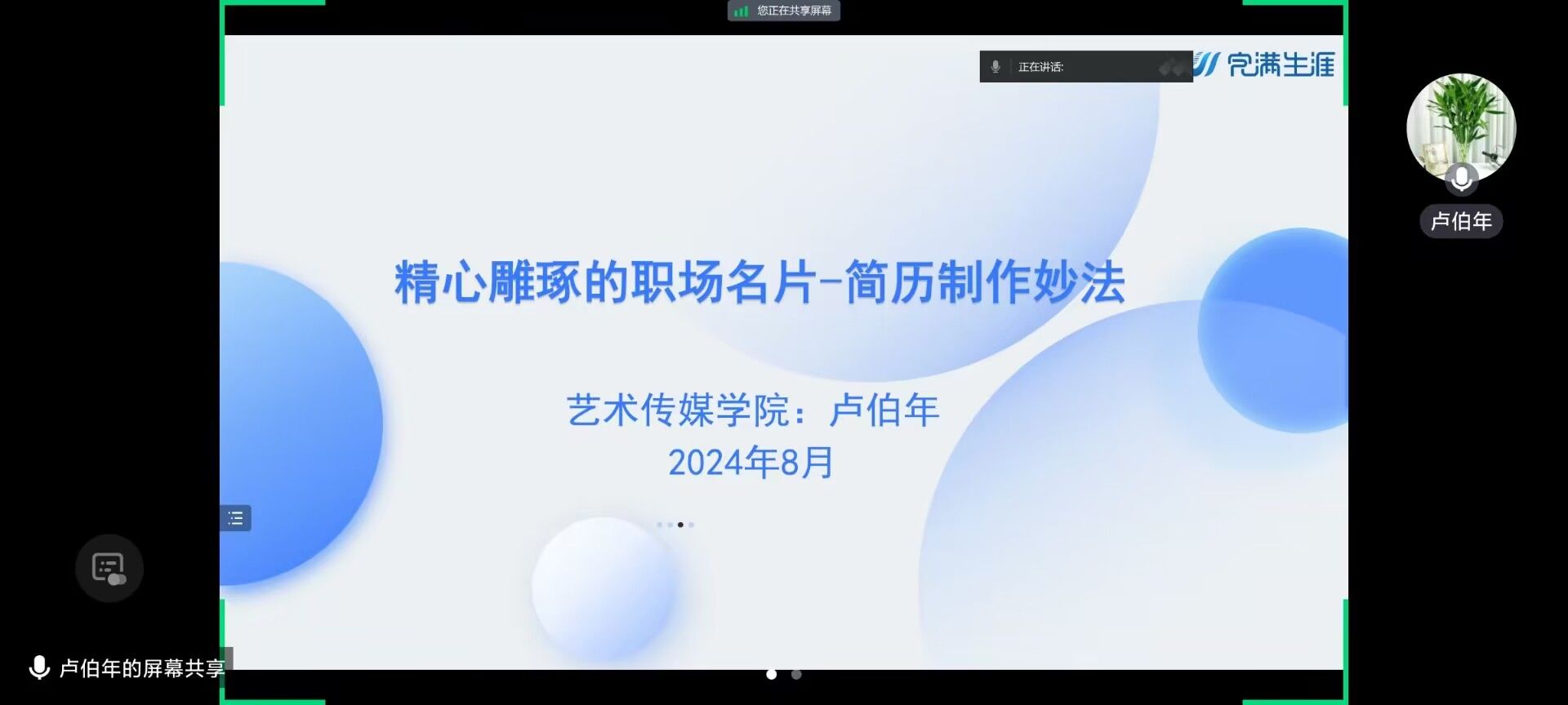 此次“简历制作妙法”线上讲座不仅为学生们提供了宝贵的简历制作技巧和方法,提升了毕业生简历制作水平和就业竞争力;还激发了他们对于未来求职的信心和热情,增强了同学们求职就业意识,为毕业生更高质量、更充分就业奠定基础。智能工程学院将持续关注学生的就业问题,为他们提供更多实用、有效的就业指导和支持。