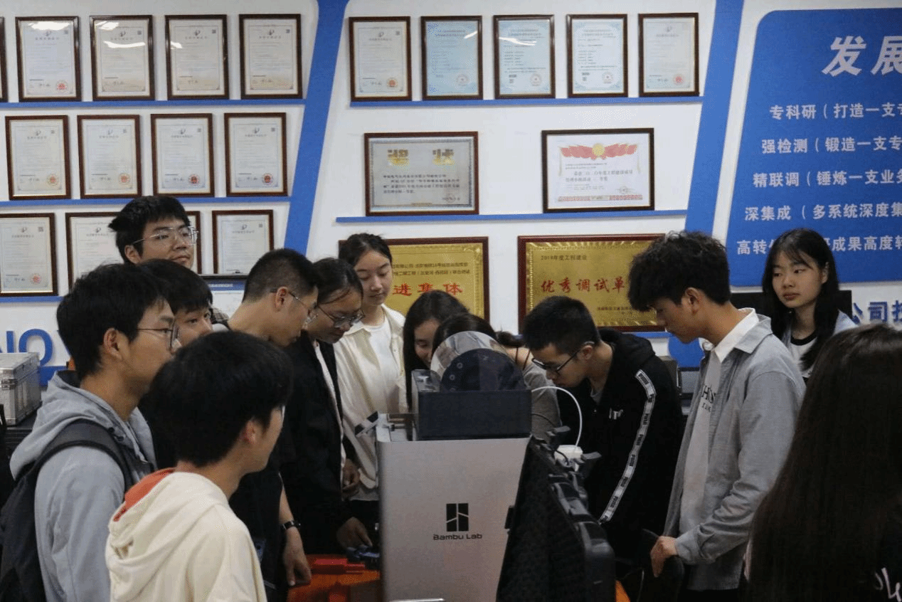 参观完轨道体验区后,师生们来到企业的技术研发中心,由我们本校毕业学长带领参观,参观前企业高干通过走廊文化墙介绍企业研究方向,研究成就,及涉及区域,在接下来的参观中本校和各部门高干耐心细致地为我们解答了好多学习,就业,生活等方面的问题。就像学长说的那样,两种思想碰撞就不止两种思想了。这次参观活动深入的提高了我们的学习能力、沟通能力和自我管理能力,改变了我们的生活态度。