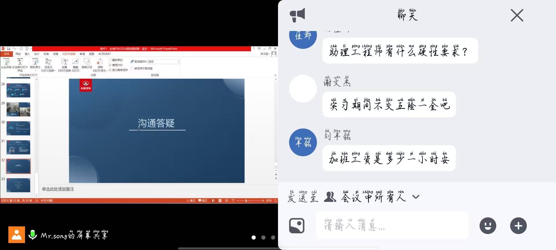 为进一步推进学院就业工作,2024年2月27日14:00,智能工程学院引进长城汽车旗下一线新能源汽车公司,蜂巢蔚领动力科技(江苏)有限公司举办线上宣讲会。此次活动吸引了众多学子的关注和参与,共计70余名智工学子参加。
