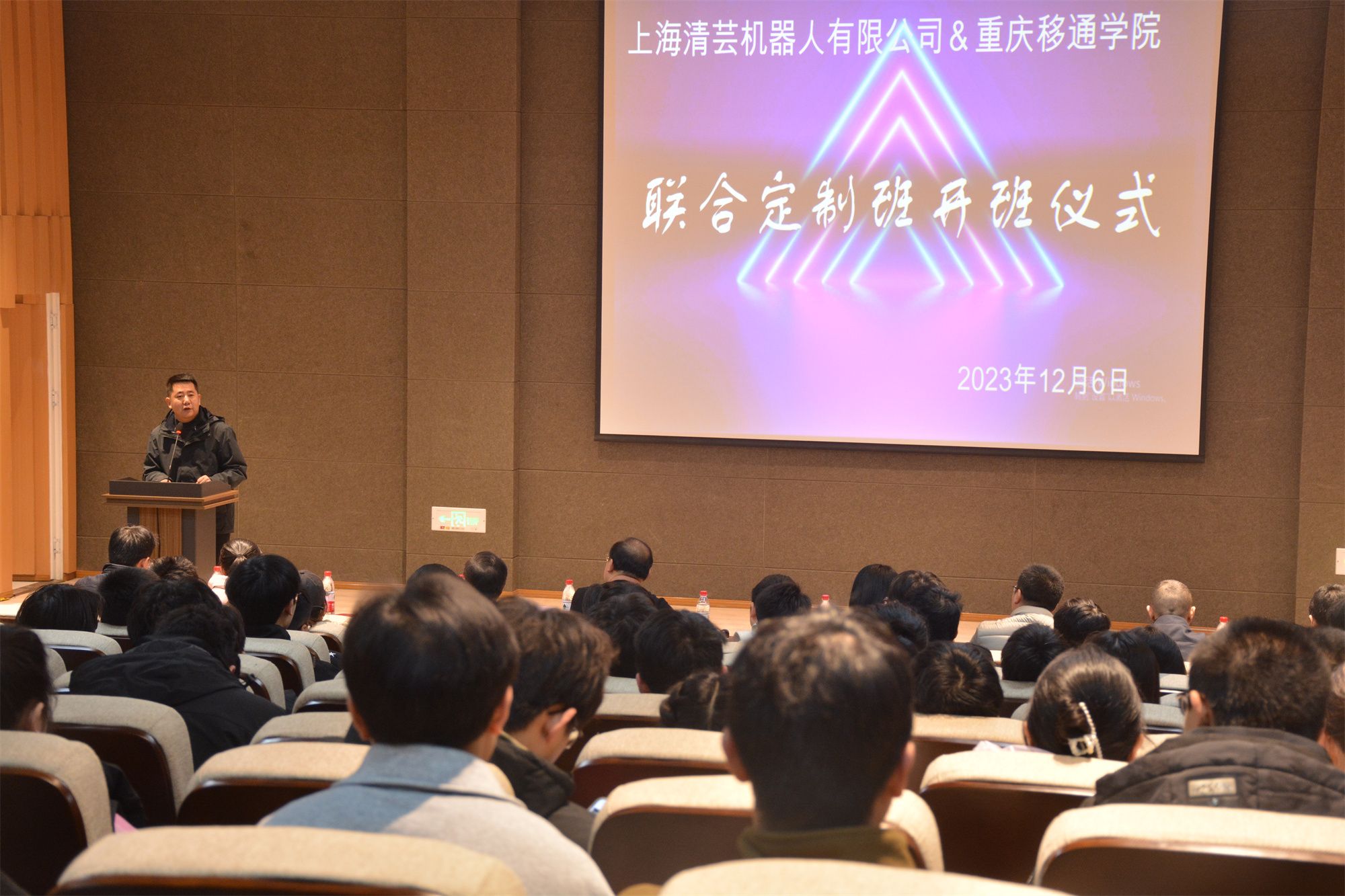 随着科技的不断进步,人形机器人技术已经成为未来发展的重要方向之一,为了帮助移通学子提升自身的就业竞争力,为未来的职业发展打下坚实的基础,促进学科交叉融合、增强创新能力和实践能力,重庆移通学院与上海清芸机器人公司联合定制人形机器人培训班于12月6日10:00在六度空间无限多功能厅举行开班仪式。本次开班仪式邀请到了上海清芸机器人有限公司王磊董事长、荆太平高级工程师、重庆移通学院副校长陈仲华、教务处处长高飞、智能工程学院院长党晓圆、发展规划与科研处副处长刘建川、通信与信息工程学院副院长唐林建、智能工程学院副院长李洁及智能工程学院教师代表和定制班同学们参加。