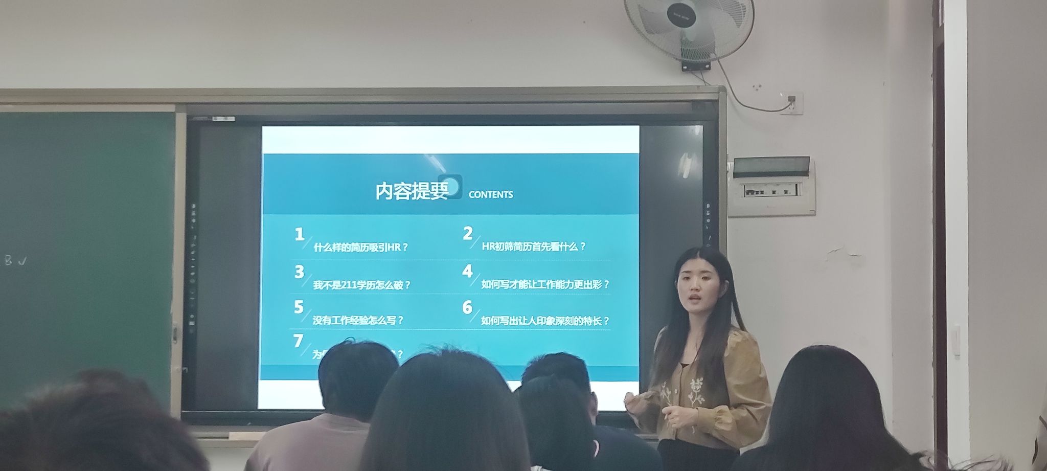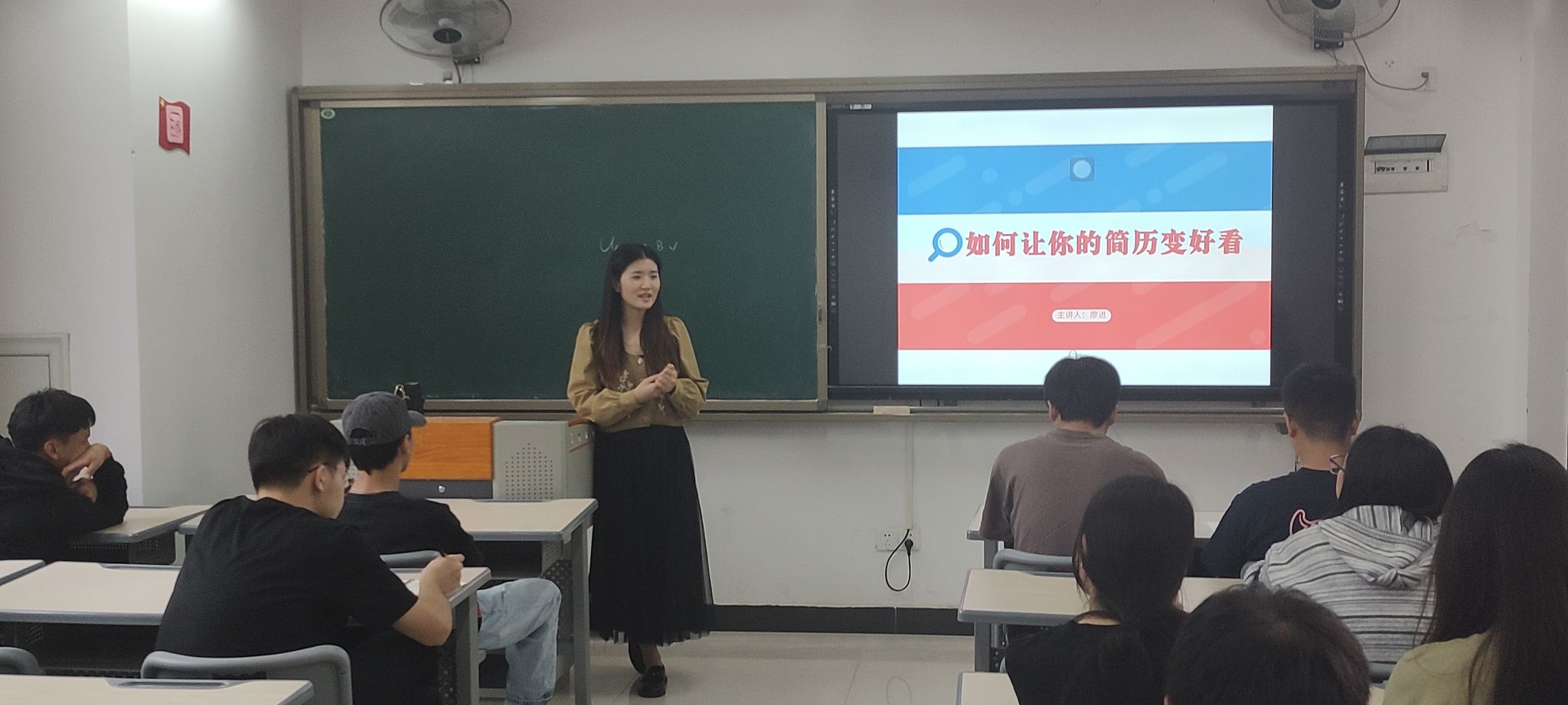 随着大学生增多,应届大学生毕业找工作的需求增多,对于岗位的竞争愈发激烈。由于简历造就了面试官对被面试者第一印象,简历的制作理所当然的成为了当今求职过程中的“兵家必争之地”。简历的简洁、精致所提高的竞争力甚至能使人从许多名校生之中脱颖而出。为此,智能工程学院有幸邀请到了廖进老师给大二学生介绍简历制作的技巧,帮助同学们制作出一份简洁、有竞争力的简历。本次活动于2023年10月18日14:30在梅若201教室举行。