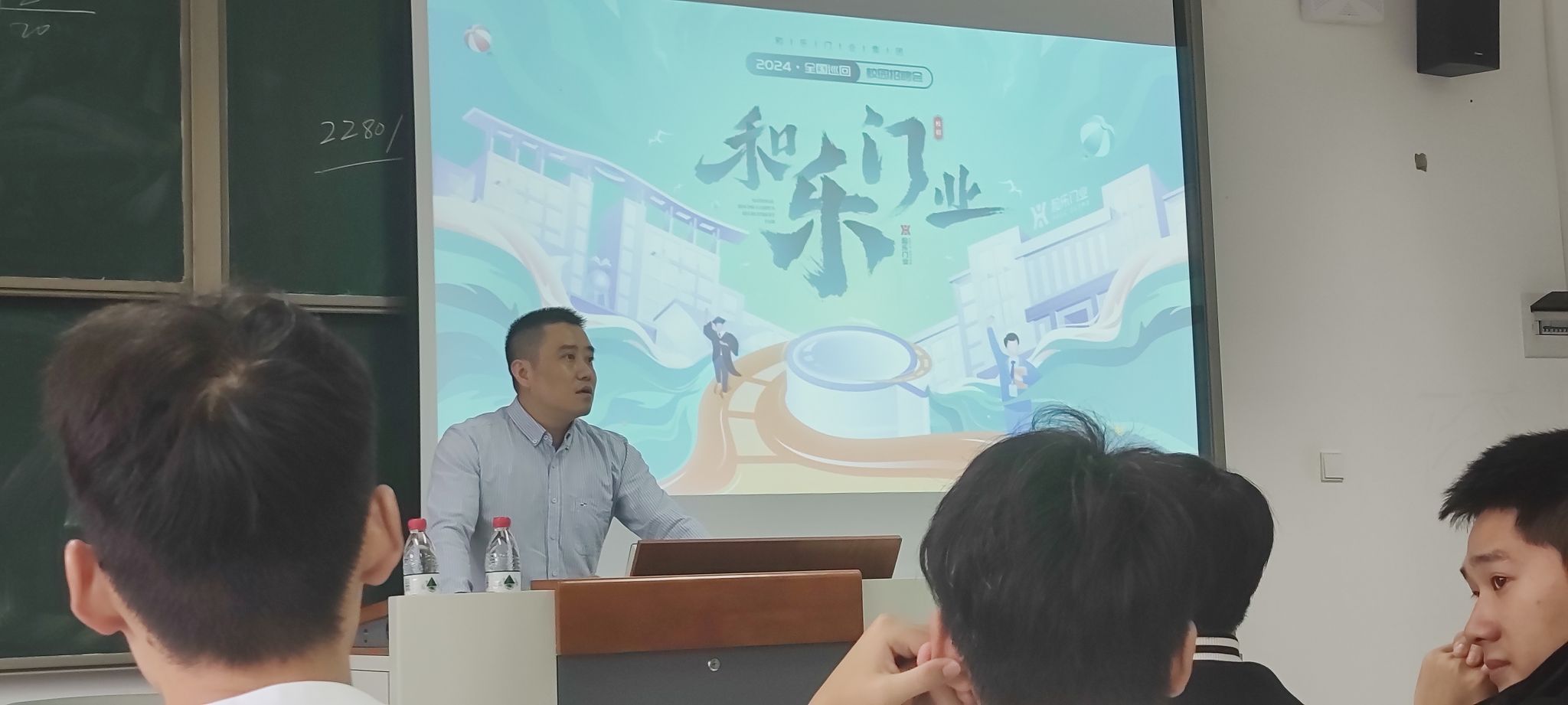为更好地推进学院就业工作,促进2024届毕业生顺利就业,2023年10月13日10:00,智能工程学院引进和乐门业集团进校宣讲,企业负责人在9201教室举行了宣讲,智能工程学院共20余名2023届毕业生参加了此次宣讲会。