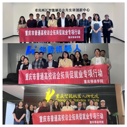 为扎实推进“访企拓岗促就业”专项行动,拓展就业新空间,破解学生就业难题,促进毕业生高质量就业,深化产教融合协同育人,4月13日上午,智能工程学院院长党晓圆、副院长李洁、自动化教研室主任张姣、辅导员殷蓉等一行15人先后走访了重庆智能机器人研究院、重庆两江智能制造公共实训创新中心、重庆华数机器人有限公司。希望以此活动为契机,进一步创新合作机制,开展全方位、长期性、深层次的校企合作交流,进一步拓宽毕业生就业市场。