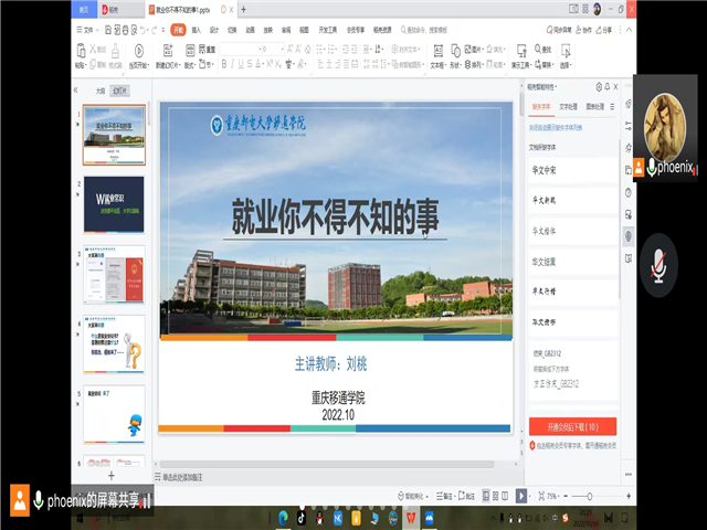 会议最后,刘桃老师进一步强调了学业情况,如完满学分、名师课堂学分、毕业设计选题、学位考试等内容。从这些问题出发,结合疫情要求,他逐步解析,细致地描述了这些学分学业的内容和要求,并提出了部分解决方案,为同学们解决问题提供助力。
