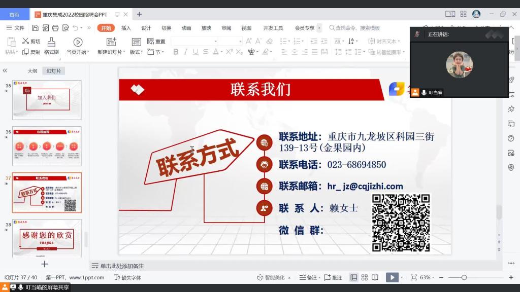 在直播中,企业宣讲人结合PPT和视频向参加宣讲会的毕业生介绍了公司概况、工作要求、薪资待遇等基本信息。随后,宣讲人和毕业生就企业文化、企业环境等问题进行了进一步的讨论,以加深毕业生对企业的进一步了解。宣讲人耐心解答了同学们提出的实习期和试用期在待遇上有何区别等问题。