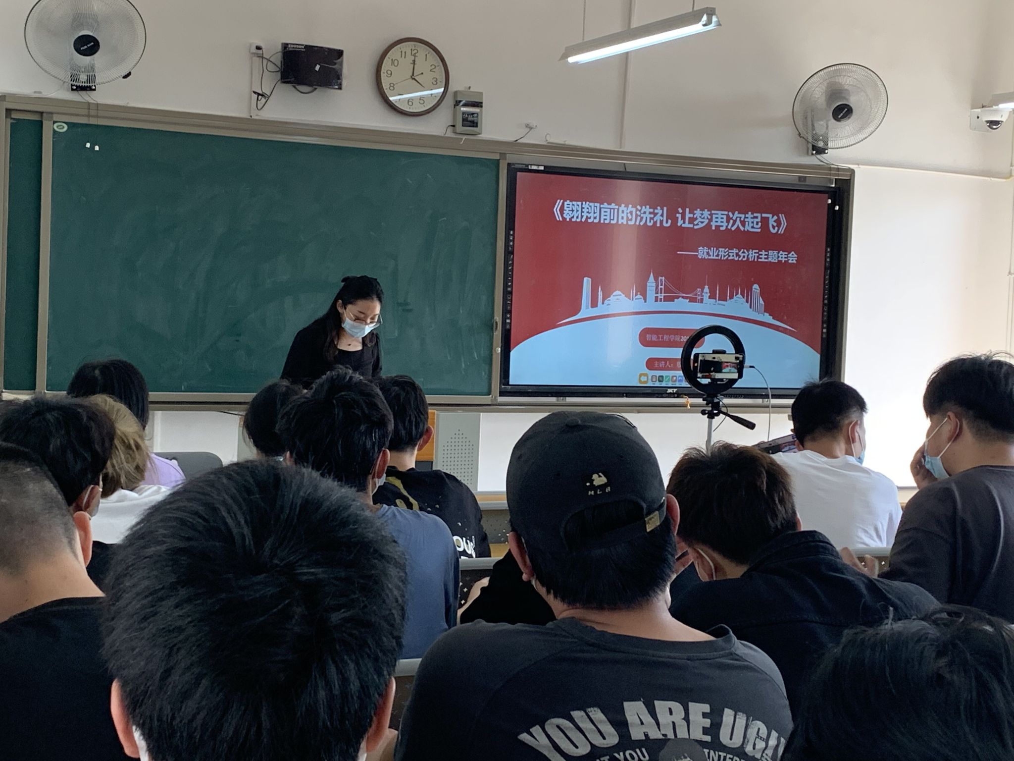为进一步让大三同学了解当代大学生就业形式情况的认识,2021年9月13日智能工程学院在梅若书院举行关于2019级就业形式分析主题年级会,本次会议结合疫情防控要求,采取线下+线上相结合,参与会议的班级有2019级轨道交通电气与信号、机器人工程、车辆工程、电气工程与智能控制以及自动化专业的全体同学。此次会议由智能工程学院辅导员殷蓉老师主持,参与会议有学生工作办公室主任、以及现任我校“大学生职业规划与就业创业指导研究”课题组成员廖阳老师。
